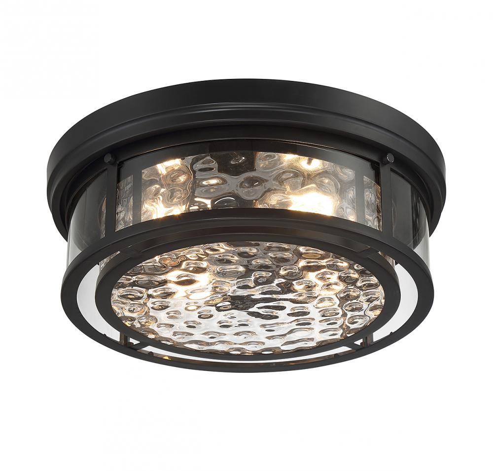 The Ashton 4-light ceiling flush mount light beautifully combines natural and mechanical elements to create the best of both worlds. A rippling hammered glass shade is held in place by a riveted band that brings statement bangle bracelets to mind and is finished in matte black. Ashton is 7" in height and 20" in width. It uses 4 standard size bulbs of up to 60 watts per bulb (bulbs not included).