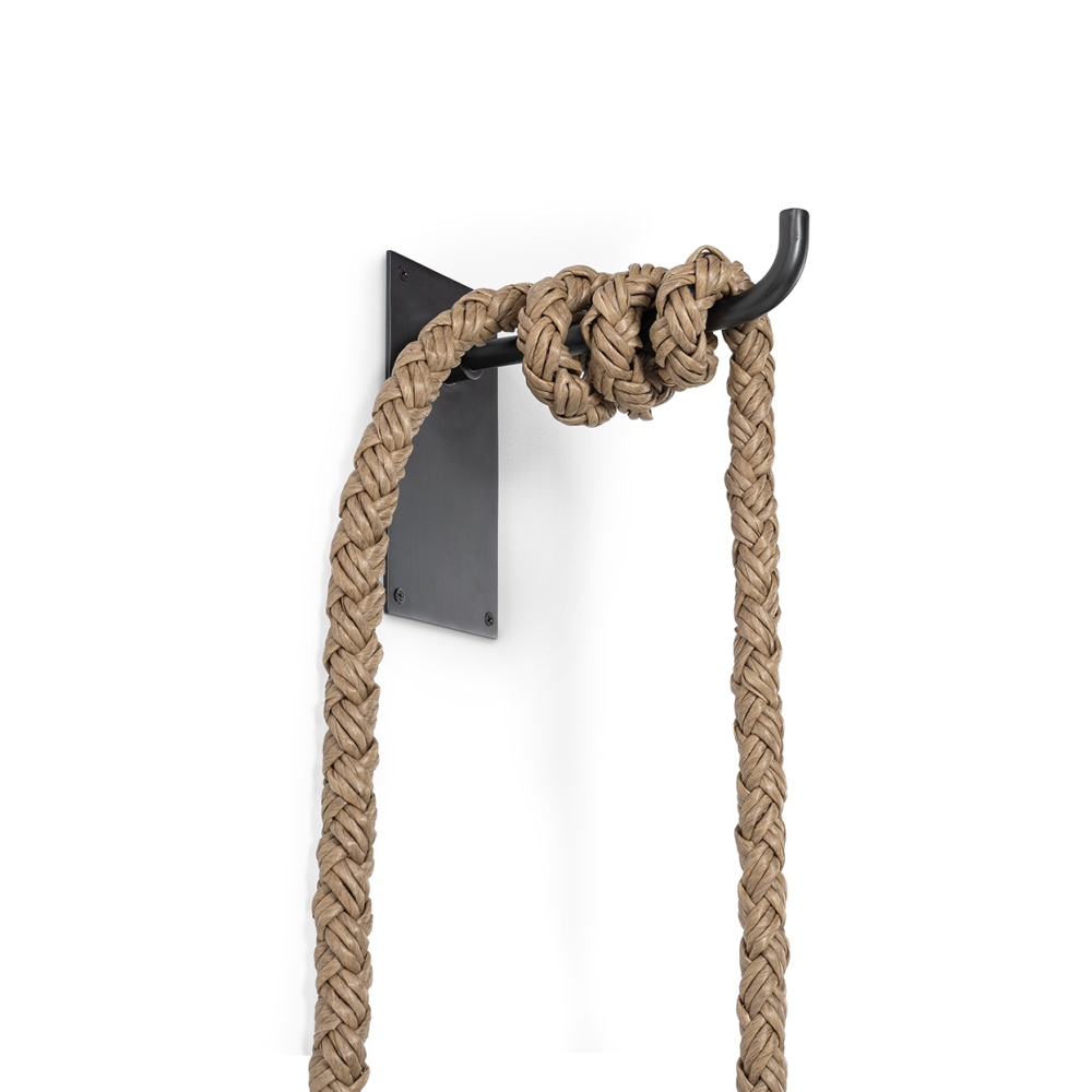 Jeffrey Alan Marks Collection. Powder coated metal frame features hand-twisted all-weather synthetic wicker in a natural tone finish. Pendant comes with a powder coated metal wall mount in oil-rubbed bronze finish. Suitable for covered outdoor use in a da