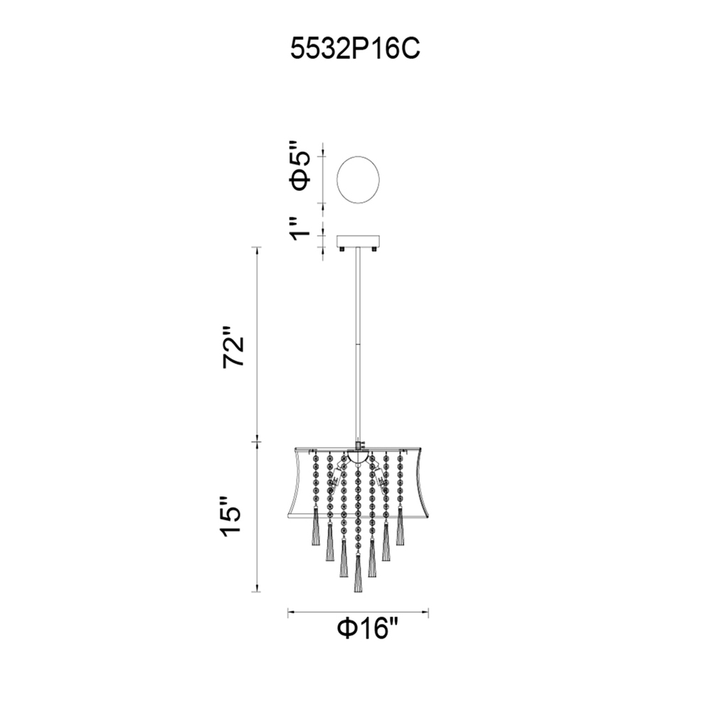 Dimensions: H 15" x W 0" x L 16" - Maximum Height 87" - Chrome Finish - G9 Bulb Not Included - Indoor (DRY Location) - cETLus Approved - Includes Assembly Instructions and Hardware - Compatible With Standard Low Voltage Dimmer - Comes With