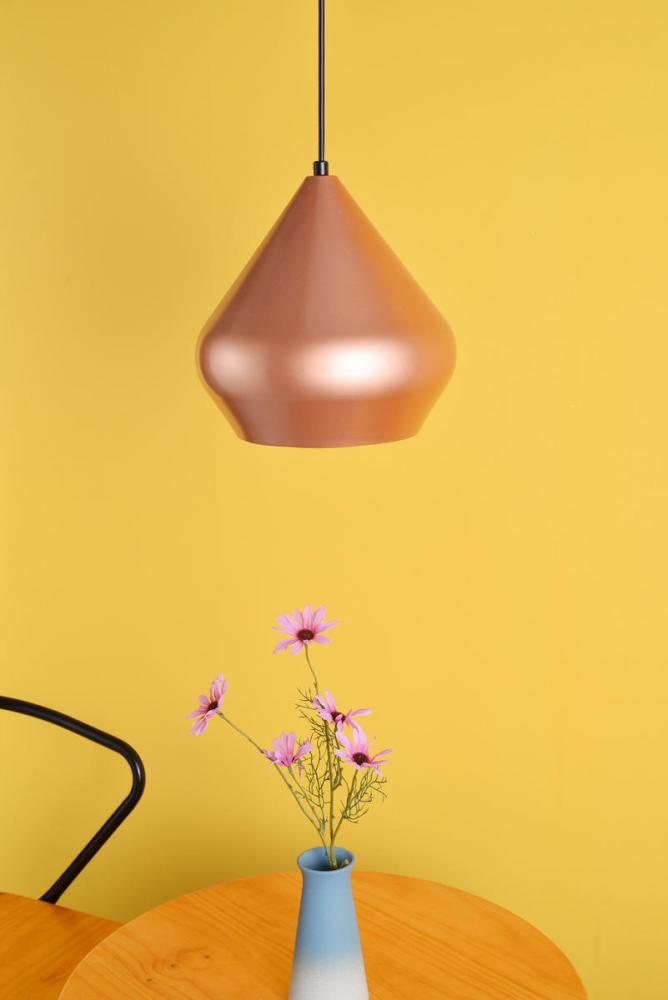 This contemporary light will add a modern shine in any room. The honey gold exterior/white interior finish diamond shaped shade creates a modern intrigue with handsome features. Its sleek look and industrial charm will surely complement your living room, dining room, or entry way.