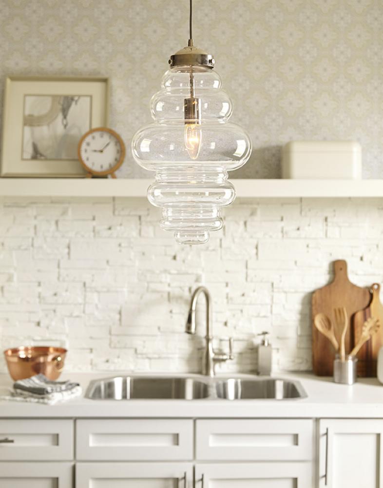 The Ballina collection of pendants are defined by their large, clear shapely glass shades. These stand-out pendants work well alone and even better in groups. A polished nickel finish and silver hanging wire complete Ballina's modern design.