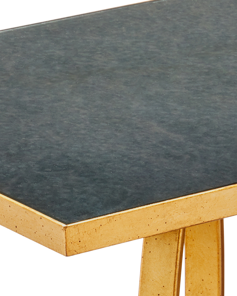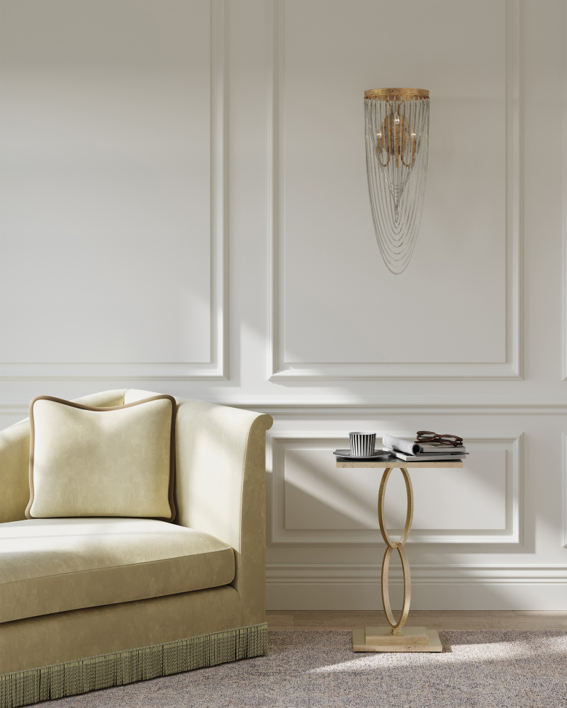 The Bangle Champagne Accent Table will ornament a room with transitional style. The silvered-gold accent table with its antique mirror top has an open design made of two wrought-iron rings that inspired its name. The interconnecting bangles are fitted between a stacked base and a rectangular top, which is slightly larger than the base.