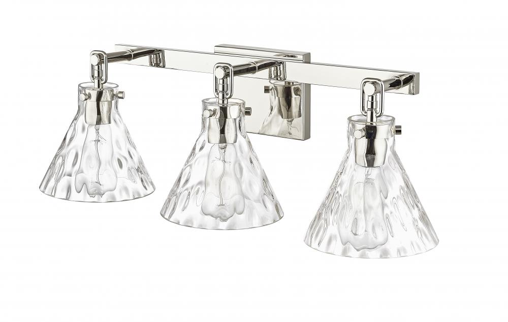 The Barlon Collection of vanity and pendant lighting provides a unique touch of style with artfully flared, clear water glass shades. The fixtures are a modern take on classic hook-style lantern lighting and are available in matte black, polished nickel, vintage brass, or modern gold with 1-light, 2-light, and 3-light options. This collection is the perfect look for a modern farmhouse or industrial-style loft.