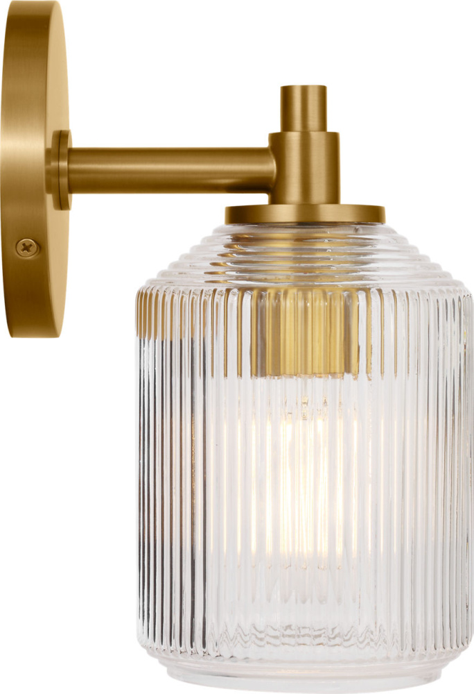The Barstow 9" Vanity by Chapman & Myers captures the essence of vintage prismatic glass in a compact, refined form. Its ribbed clear shade features vertical and horizontal cuts that echo the precision of industrial craftsmanship, while the minimal metal frame keeps the silhouette clean and architectural. At 9", this fixture is ideal for smaller vanities or paired installations beside mirrors—where its sculptural clarity and polished detailing bring a sense of quiet sophistication to personal spaces.