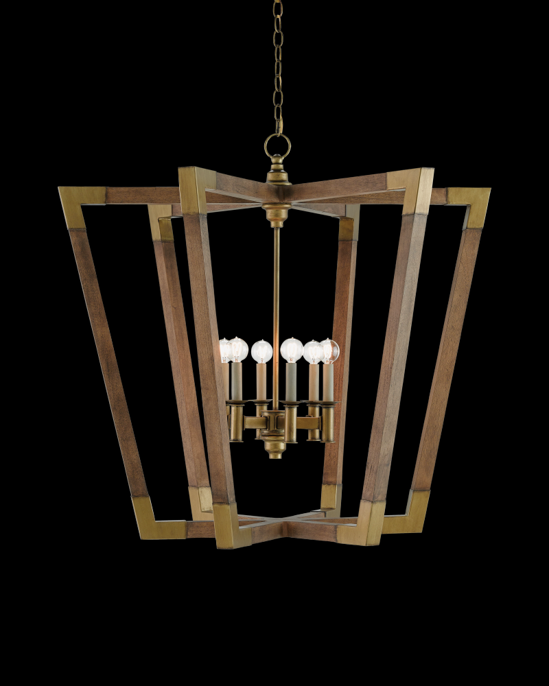 The Arts & Crafts movement has many beneficiaries in the world of design, and the Bastian Chandelier is one of them. Joined by a number of designs in this family of fixtures, the chandelier has wrought iron and wood finished in chestnut and brass that would have made the likes of Frank Lloyd Wright take notice. The aged feel of the brass clasping the wood spokes of the six-light fixture brings extra warmth to this chandelier.