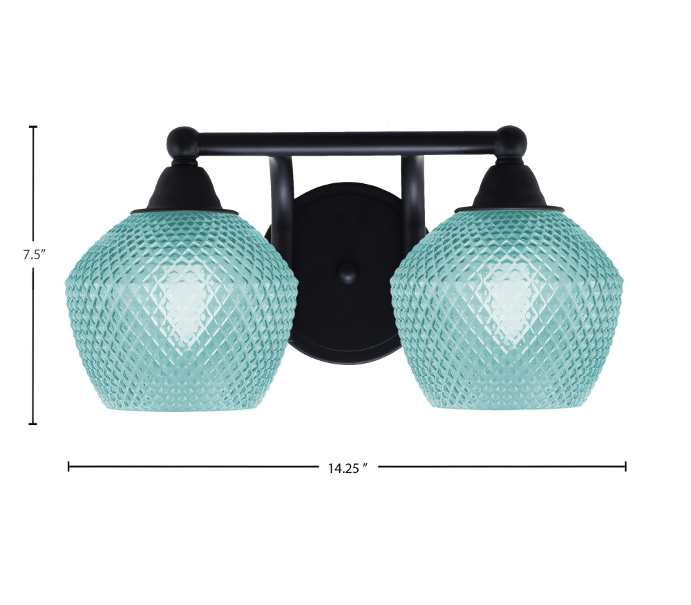 Paramount 2 Light Bath Bar Shown In Matte Black Finish With 6 Turquoise Textured Glass
