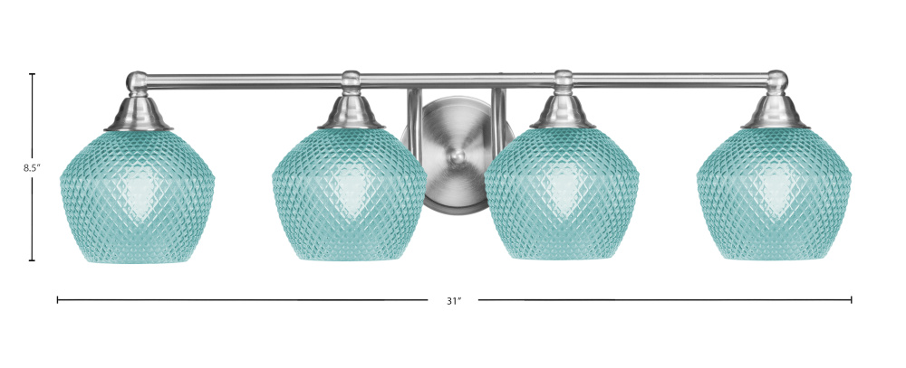 Paramount 4 Light Bath Bar Shown In Brushed Nickel Finish With 6 Turquoise Textured Glass