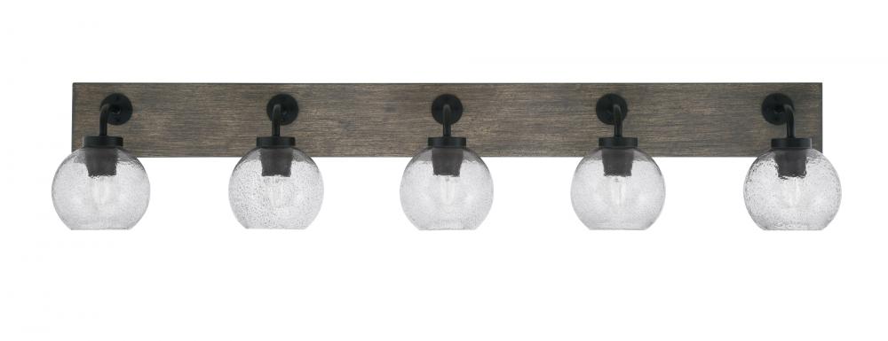 Oxbridge 5 Light Bath Bar In Matte Black & Painted Distressed Wood-look Metal Finish With 5.75 Smoke Bubble Glass