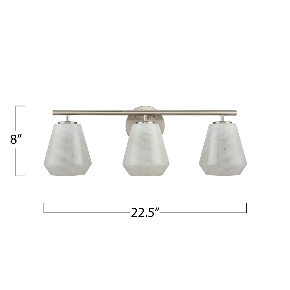 Step into timeless elegance with the wall sconce from the Brooke Collection. Its brushed nickel frame exudes modern sophistication, perfectly paired with the ethereal “Wispy White” glassware that gently diffuses light like a soft cloud at dusk. A beautiful way to update your bathroom or vanity area.