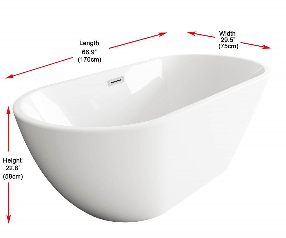 Bathtub 66.9 x 29.5 x 23 GW with PCH drain kit