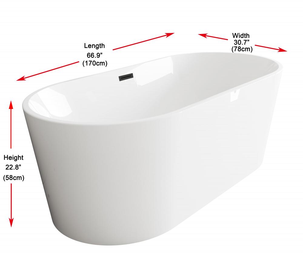 Immerse yourself in the ultimate relaxation experience with this elegant freestanding soaking bathtub, featuring its soft curves and balanced shape, the double-ended tub complements both modern and traditional bathroom aesthetics while providing a touch of understated elegance. The smooth, rounded rim offers comfortable arm support, making it the ideal spot to unwind. Equipped with a pop-up drain and integrated overflow, this tub seamlessly combines convenience and style. with a generous capacity and 15-inch soaking depth, it's perfect for those looking to indulge in a deep, luxurious soak. Available with customizable drain trim finishes like brushed gold, matte black, and more, this bathtub is designed to fit your unique style. Durable and easy to install with adjustable foot levelers, this tub is both a statement piece and a functional retreat in your home.
