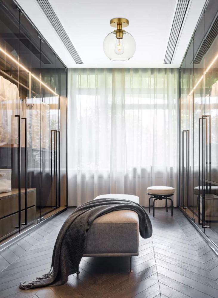 Refined style with a practical design, Baxter flush-mount ceiling lamps bring cosmopolitan sophistication anywhere, especially to an entryway, hallway, bathroom, kitchen, or closet. The smooth iron frame features a disk-shaped canopy and comes in a brass finish. The clear spherical glass shade remains open at the center to allow for effortless replacement of the filament-style bulb (not included). Living in the big city has never been this easy.