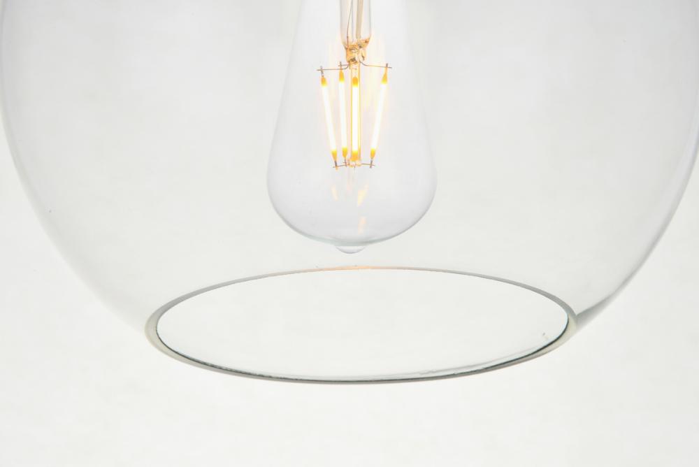 Feature 2: spherical clear glass shade with open center for easy bulb replacement