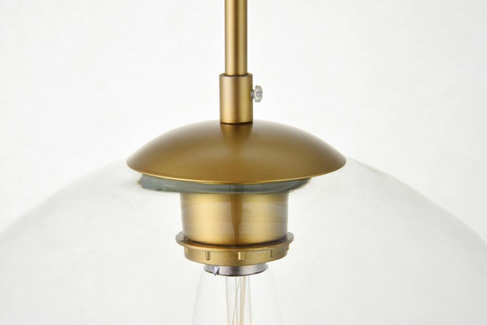 Refined style with a practical design, Baxter hanging pendant lamps bring cosmopolitan sophistication anywhere, especially to an entryway, office, bathroom, bedroom, or kitchen. The smooth iron frame features a disk-shaped canopy and comes in a brass finish. An adjustable black cord allows you to vary the hanging height from 27 to 72 inches. The clear spherical glass shade remains open at the center to allow for effortless replacement of the filament-style bulb (not included). Living in the big city has never been this easy.