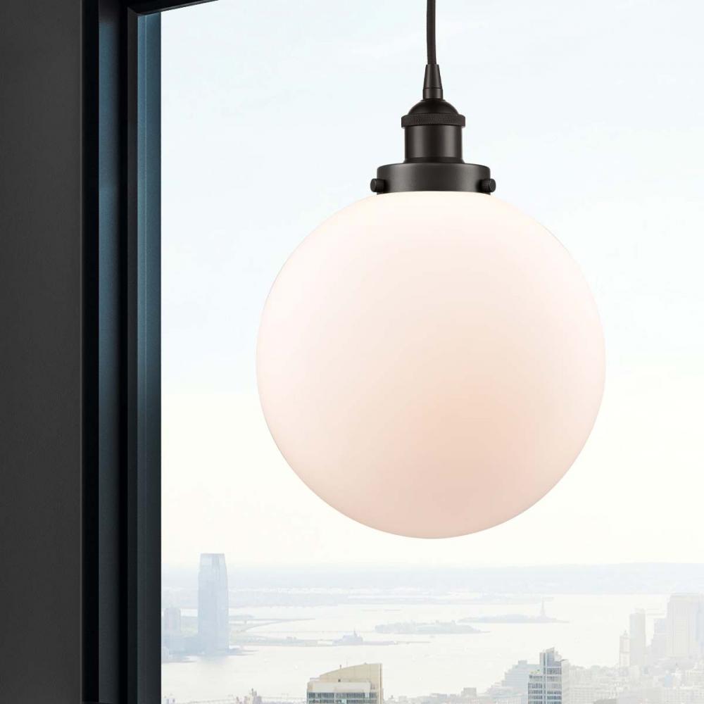 Beacon - 1 Light - 10 inch - Oil Rubbed Bronze - Matte White Shade - Cord hung - Mini Pendant
