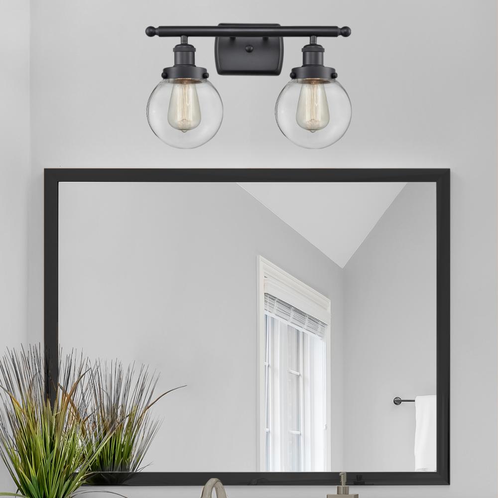 Beacon - 2 Light - 16 inch - Matte Black - Clear Shade - Bath Vanity Light