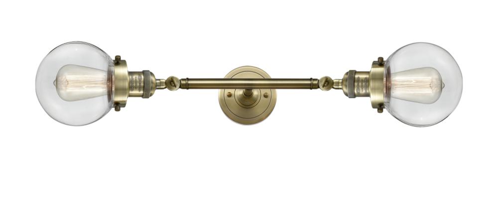 Beacon - 2 Light - 6 inch - Antique Brass - Clear Shade - Adjustable Bath Vanity Light