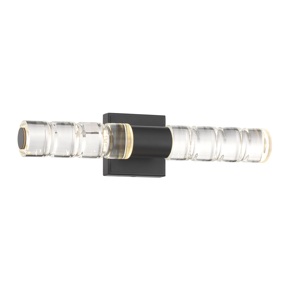Highly textured batons of K9 crystal draw the eye and shine brightly in the Savoy House Beale LED wall sconce. The crystal takes center stage, held in an understated structure that is decorated in a chic Black Lustre finish. This edgy style is a perfect way to illuminate a bath vanity, piece of art, hallway, living room, bedside table or any other space you can imagine! Beale is 5" in height, 18" in width and extends 4.5" from the wall. It uses integrated LED light sources.