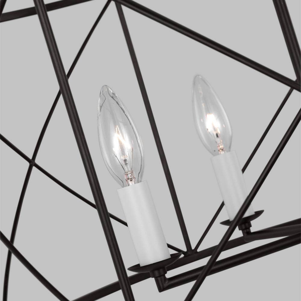 The Beatrix series by Chapman & Myers is open-caged design chandelier adding a bright light to any modern farmhouse home decor. It features white candelabra candle holder and refined finishes, showing a classic and rustic flair. Each lantern has a distinctive X cross detailing on their frame which adds both strength and visual interest. Ideal for over a kitchen island or dining room table.