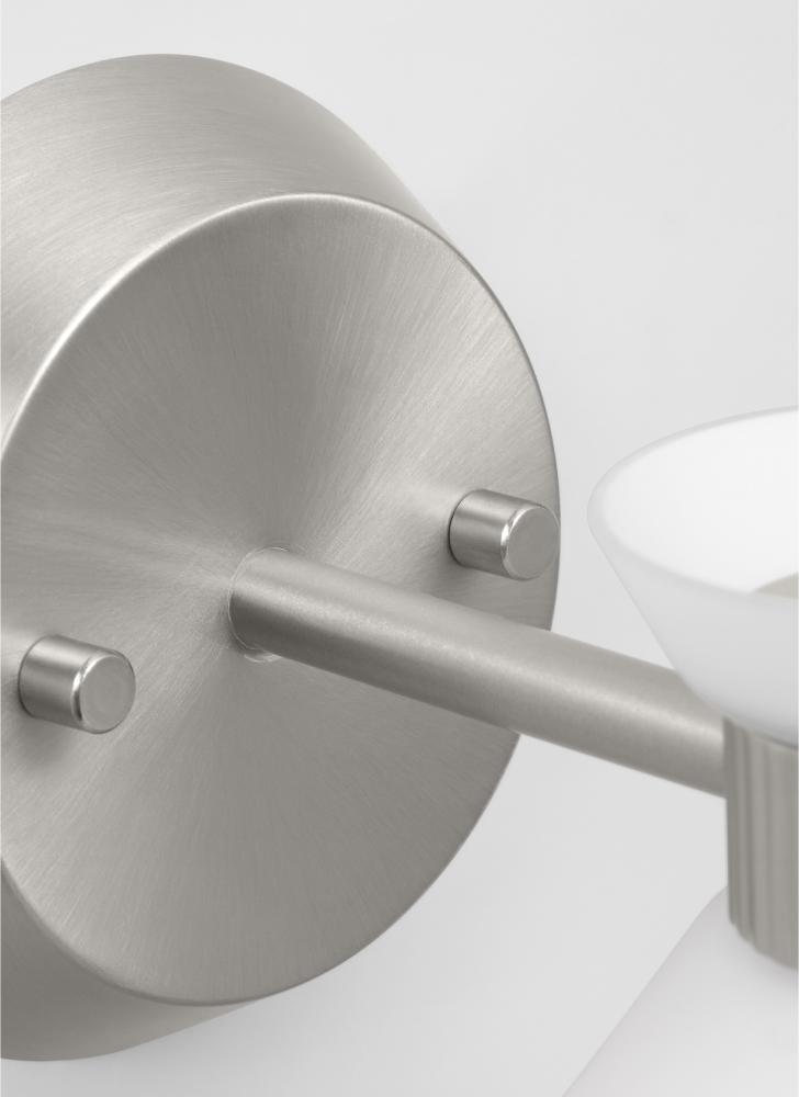 Inspired by playful mid-century modern design, the Drew & Jonathan Belcarra Small Sconce is accentuated by a flared glass shade with ribbed metal details and etched white glass that bestows an almost whimsical touch to the clean design. Available in three finishes, Brushed Steel, Midnight Black, and Satin Brass, the Belcarra looks great on its own or installed above a bathroom vanity. This fixture may be mounted in the up or down position, and is cETL listed for damp locations, making it the perfect lighting solution for any space.