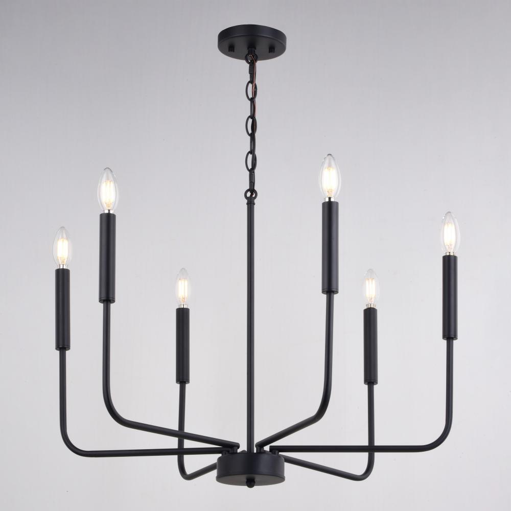 The Belden 26-in. chandelier speaks loudly, yet humbly, to the on-trend homeowner. The sleek black arms reach upwards, casting a captivating glow for any occasion. Add this versatile candelabra chandelier for the perfect touch of style in your living area, or dining space.