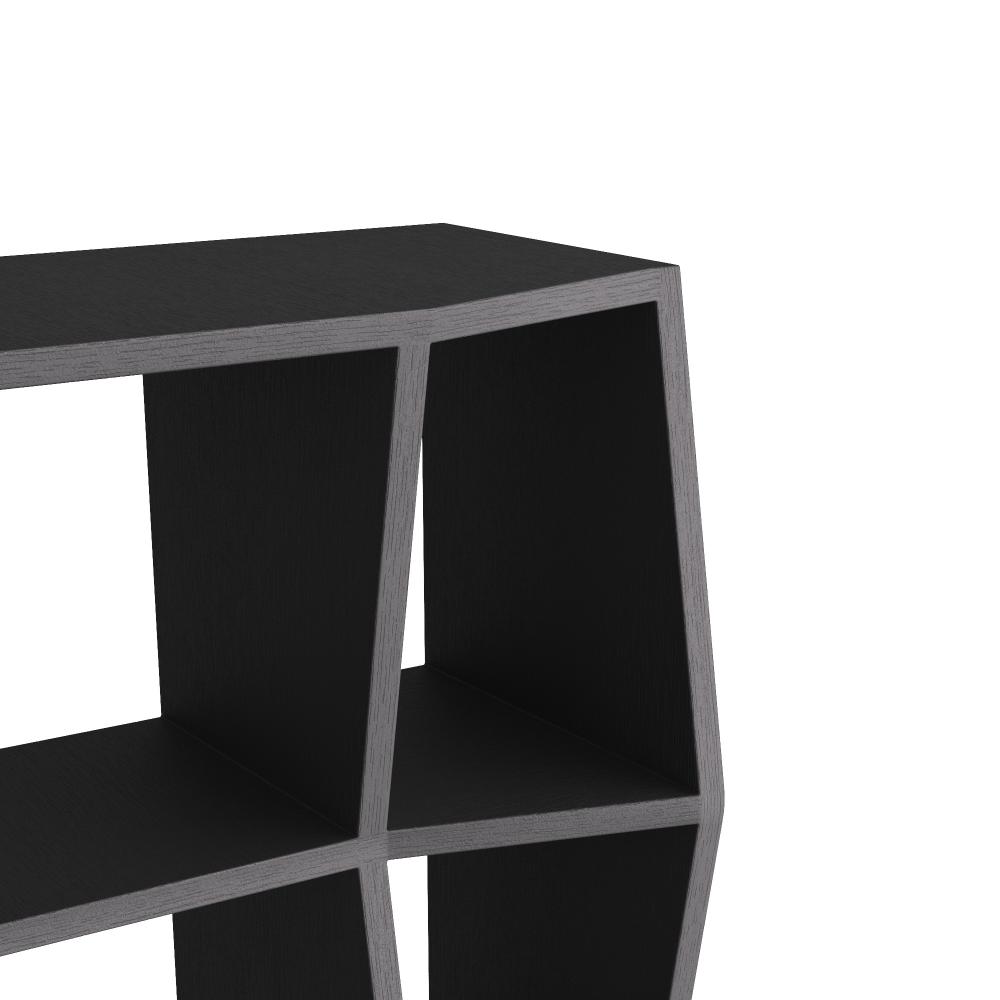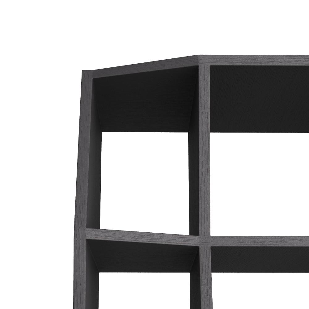 Subtle zigzags elevate the classic structure of our bookcase. Designed with shelving of varied depths, its playful angles add dynamism to any space. Finished in ebony over white oak veneer.