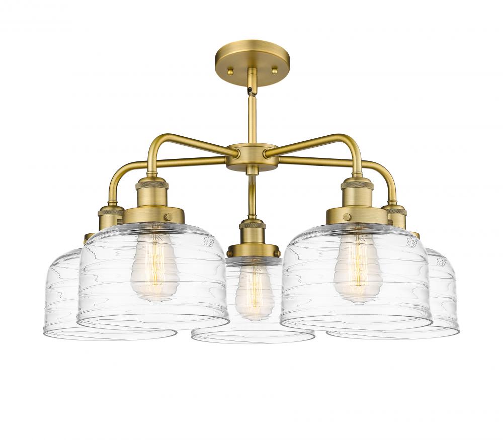 Bell - 5 Light - 26 inch - Brushed Brass - Clear Deco Swirl Shade - Chandelier