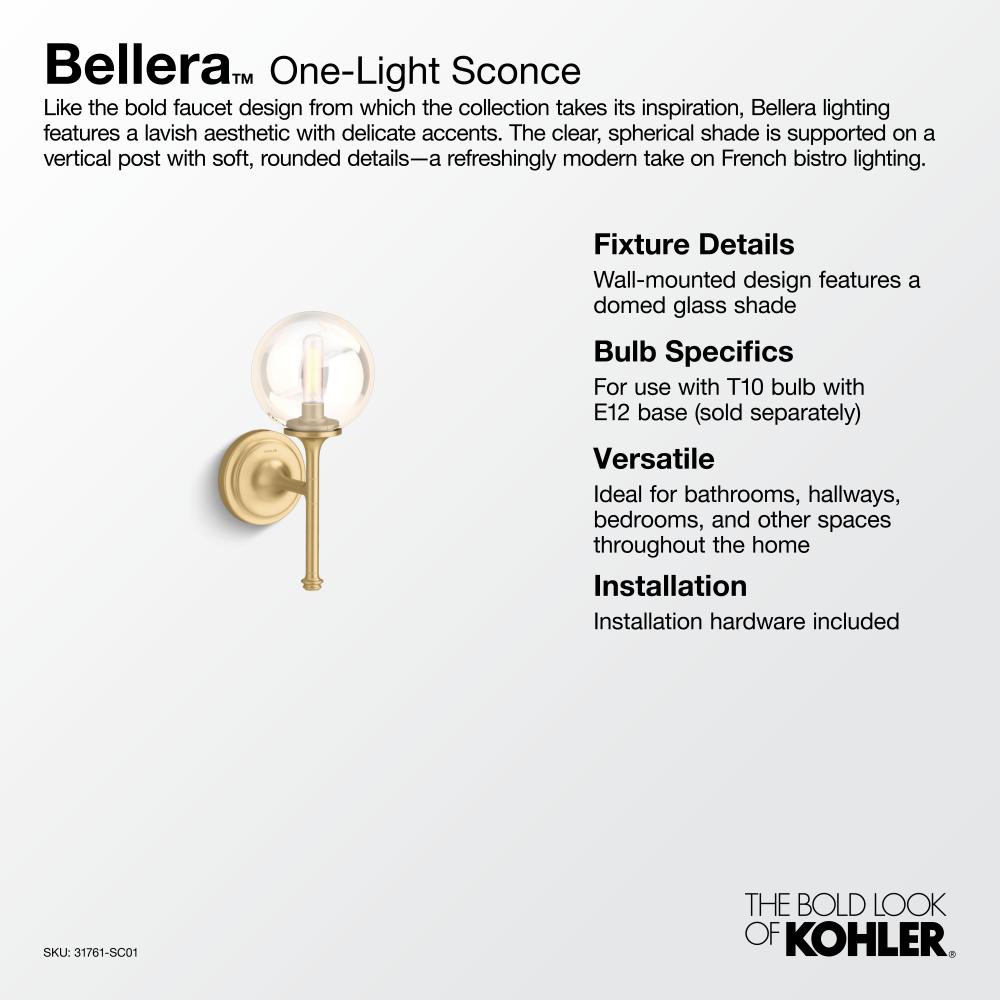 Distinguished by elegant, jewelry-inspired silhouettes, the Bellera lighting collection adds style and grace to the home with sconces, pendants, chandeliers, and flush-mounts. Featuring clear glass globes, flared metal rods and bases, and intricate metal detailing, Bellera fixtures deliver versatility with a transitional style that easily flows with your entire home's aesthetic. Brilliant and functional, these pieces were created to complement the KOHLER® Bellera® faucet collection.