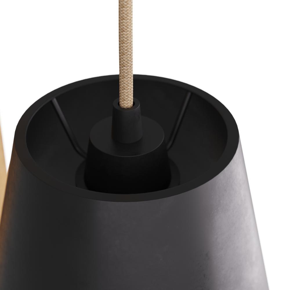 A modern interpretation of a hanging gas lamp, the Benin brings colonial design into a modern era. An elegant drop arm of English bronze iron suspended from a backplate of oyster finished catalpa wood sets the stage for a drum-shaped iron shade finished in English bronze, suspended from a mauve cloth cord. Damp-rated, although limited covered outdoor conditions may affect finish. Finish will vary.