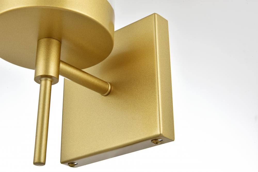 Defined by curved metal arm extends to suspend the clear bell glass shade. A contemporary stunner, it shows off the straight line details from the backplate and the streamline thin metal arm. Compatible with dimmers, so you'll have the right amount of light in any given time of the day. Completely versatile, you can place this wall light as an uplight or downlight. Rated for use in damp locations, this will work perfectly over a vanity in your bathroom.
