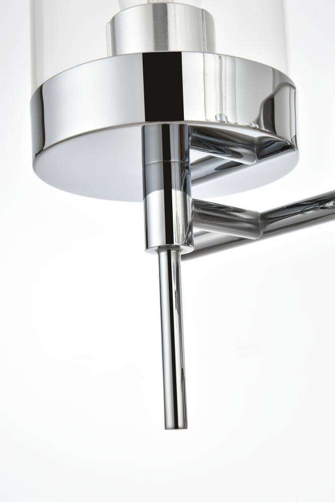 Defined by curved metal arm extends to suspend the clear bell glass shade. A contemporary stunner, it shows off the straight line details from the backplate and the streamline thin metal arm. Compatible with dimmers, so you'll have the right amount of light in any given time of the day. Completely versatile, you can place this wall light as an uplight or downlight. Rated for use in damp locations, this will work perfectly over a vanity in your bathroom.