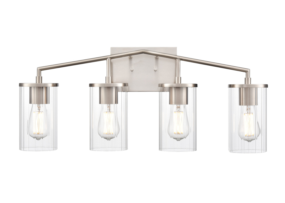 Artistic angles and a contemporary blend of metal and glass elevate the Beverlly Family of lighting to the next level. The distinctive lines of the fixtures, finished in brushed nickel, modern gold, or matte black, create the perfect framework for the beautifully beveled, clear glass globes. Available as 1-light pendant; 3- or 5-light chandelier; and 1-, 2-, 3-, or 4-light vanity, these fixtures add a subtle refinement throughout any home design.