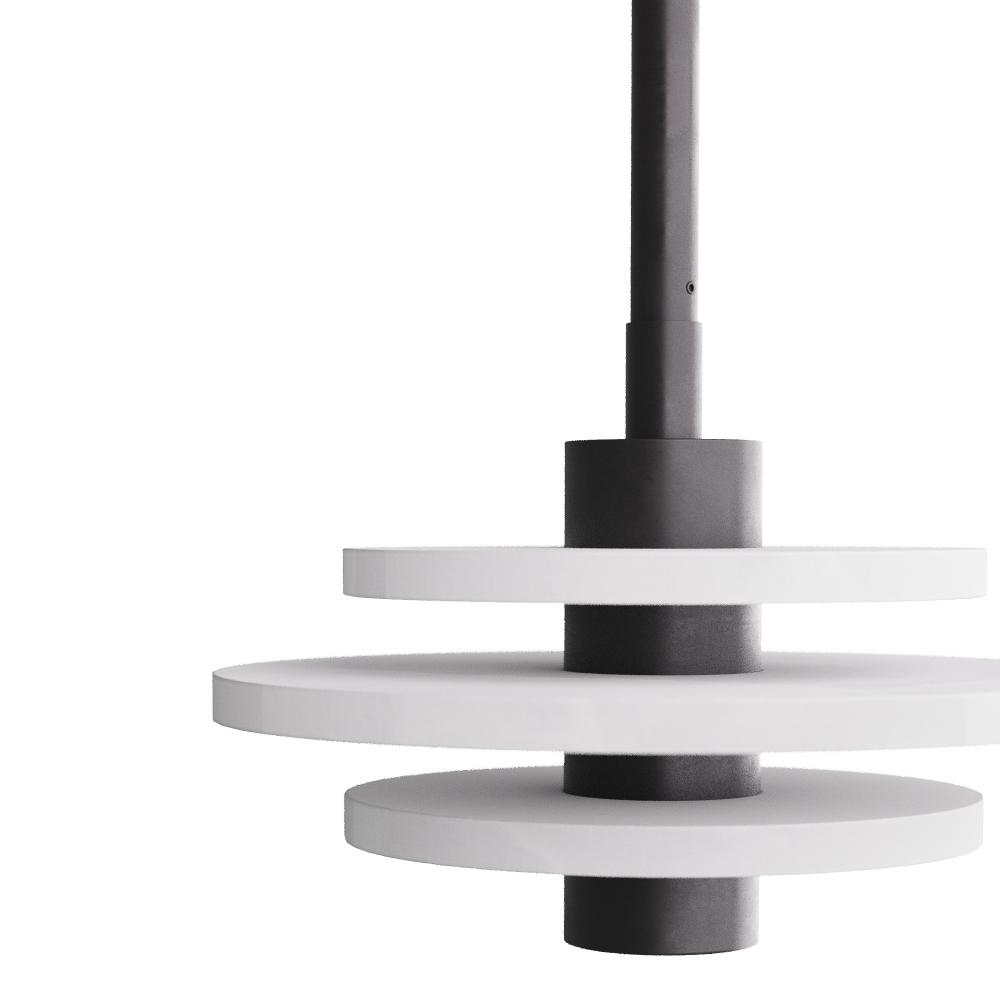 The simple forms of Elementalism provoked the design of the Bevins. Stacked rings of white alabaster are pierced by the support of an English bronze finished iron pipe. Integrated LED provides a rich glow through each ring of alabaster. Damp-rated, although limited covered outdoor conditions may affect finish. Finish will vary.