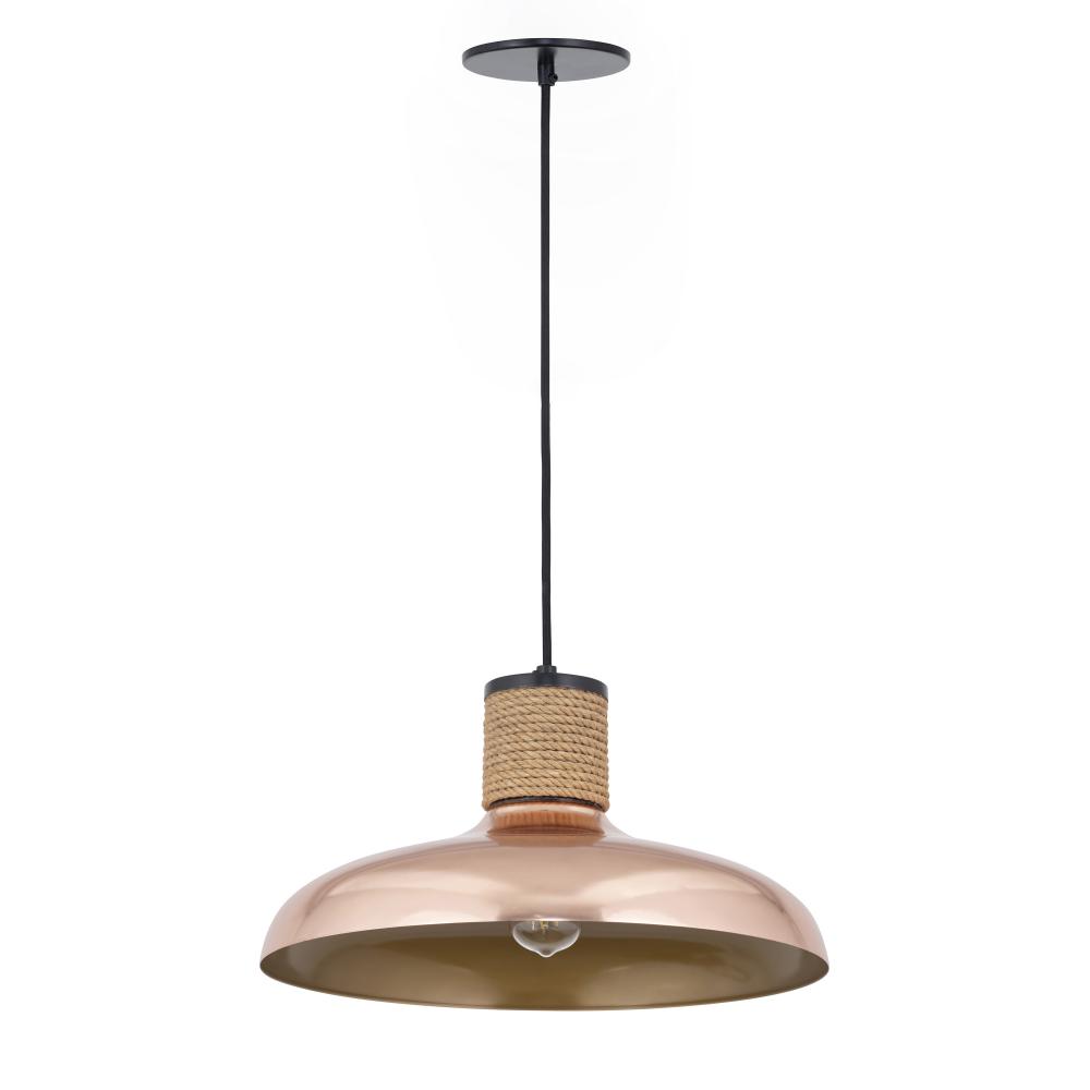 Drawing inspiration from industrial warehouse or farmhouse lighting, these classic shades feature a rayon fabric adjustable cord and hand-wound rope detail. The rustic elements are paired with spun metal shades available in a Copper finish or reflective Ju