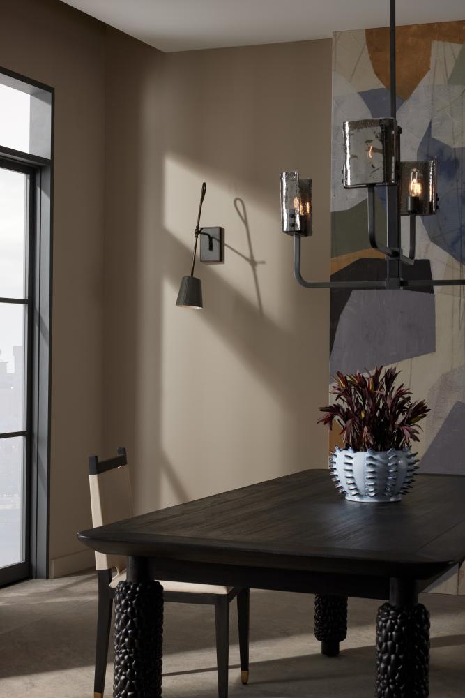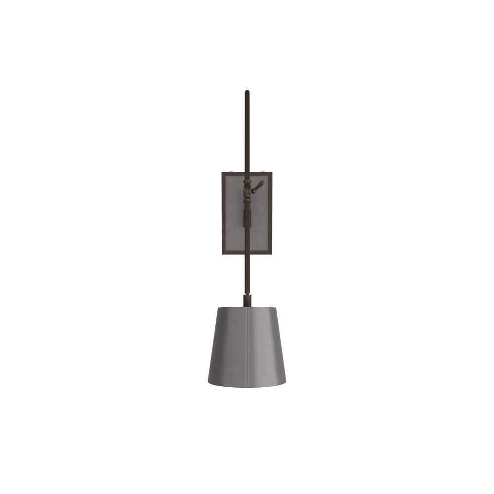 The ideal fixture for the reader in the house, the simplicity of the Birdwell was made to be a constant companion for your favorite chaise. A gestural English bronze steel arm reaches out from the graphite leather shade with a white cotton double topstitch for interest. The lamp is adjustable to move the light exactly where you need it most. Damp-rated, although limited covered outdoor conditions may affect finish. Finish will vary.