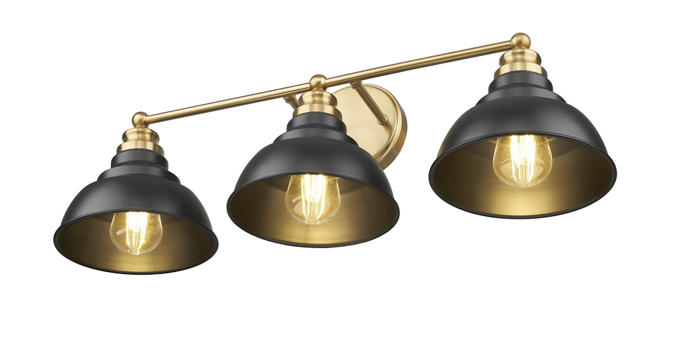 Illuminate your decor style with this three light Bishop bath fixture from Acclaim Lighting. The design features a mixed metals finish in black and brass. Stylish and sophisticated, the design is ideal for bath and vanity areas over sinks.