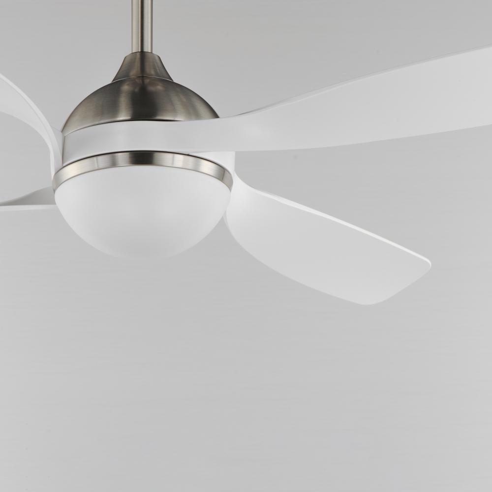 Modern and chic, the Bola collection elevates the standard fan with its beautifully balanced design. A sleek globe frame seamlessly separates the top DC motor housing from the lower LED light kit, while gracefully curved solid wood blades add a touch of na