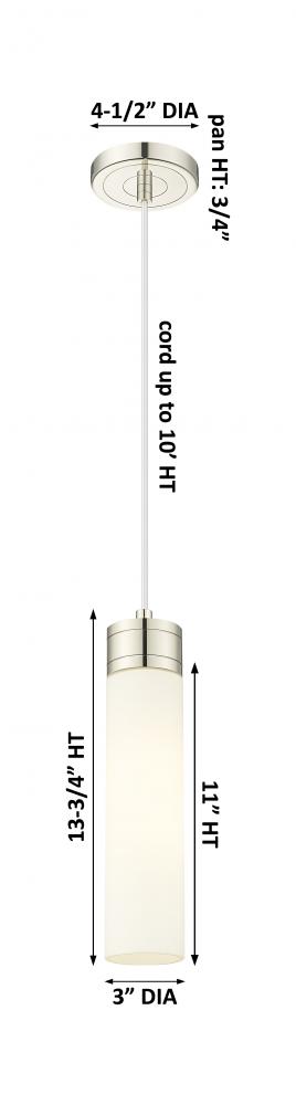 Boreas - 1 Light - 3 inch - Polished Nickel - White Shade - Cord Hung - Mini Pendant