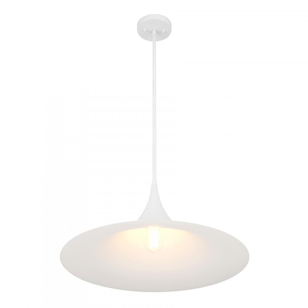 This Savoy House Bowdin 1-light pendant is beautiful in its simplicity. Its shade curves outward, bringing you a highly dramatic style that is perfect alone or in groupings. Finished in Bisque White. At 24" wide, with an adjustable height ranging from 11.25" to 65.25", it's great for large-scale spaces. Comes with four 12" downrods and one 6" downrod. Uses one standard size bulb of up to 60 watts. The bulb is not included.