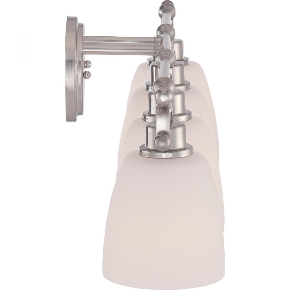 Traditional in design transitional in style the Bower Collection features an interesting silhouette. The classic Brushed Nickel finish and opal etched glass gives it the appeal to be proudly shown off in any bathroom.