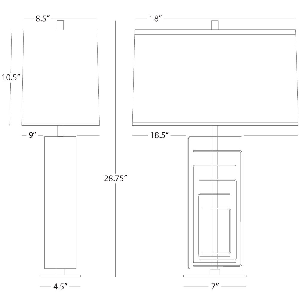 Modern Brass Finish with Clear Acrylic Accents Braxton Table Lamp with Fondine Fabric Shade - Contrast and balance are at the center of Braxton's modern design. Alternating metal and acrylic panels create an expressive geometric construction for the body of this lamp.
