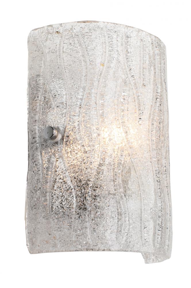 It's back! This popular design from Varaluz's past makes a modern and bright return. Named appropriately for its overall lighting effect, these fixtures marry crystally-cool ice glass, handmade Murano style with clear glass chips fused by heat on the back side, to clean and simple chromed metal work.