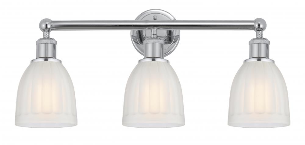 Brookfield - 3 Light - 24 inch - Polished Chrome - White Shade - Bath Vanity Light