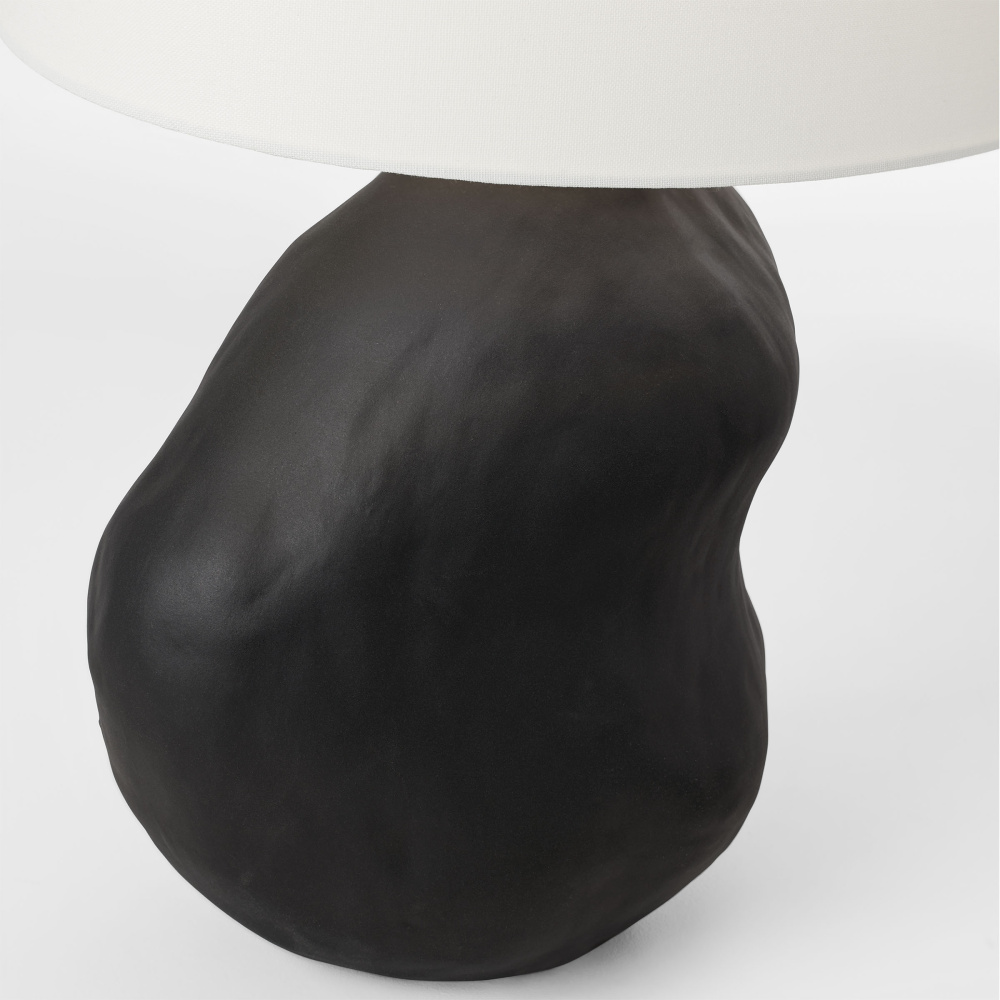 The Broxton One light table lamp in matte white ceramic by Hable is hand-built and displays organic indentations. Cenotes embody shapely, textural abstract forms and complement shades of fine fabric. Sweeping shoulder and curved body give a nice canvas to see all the unique indentations.