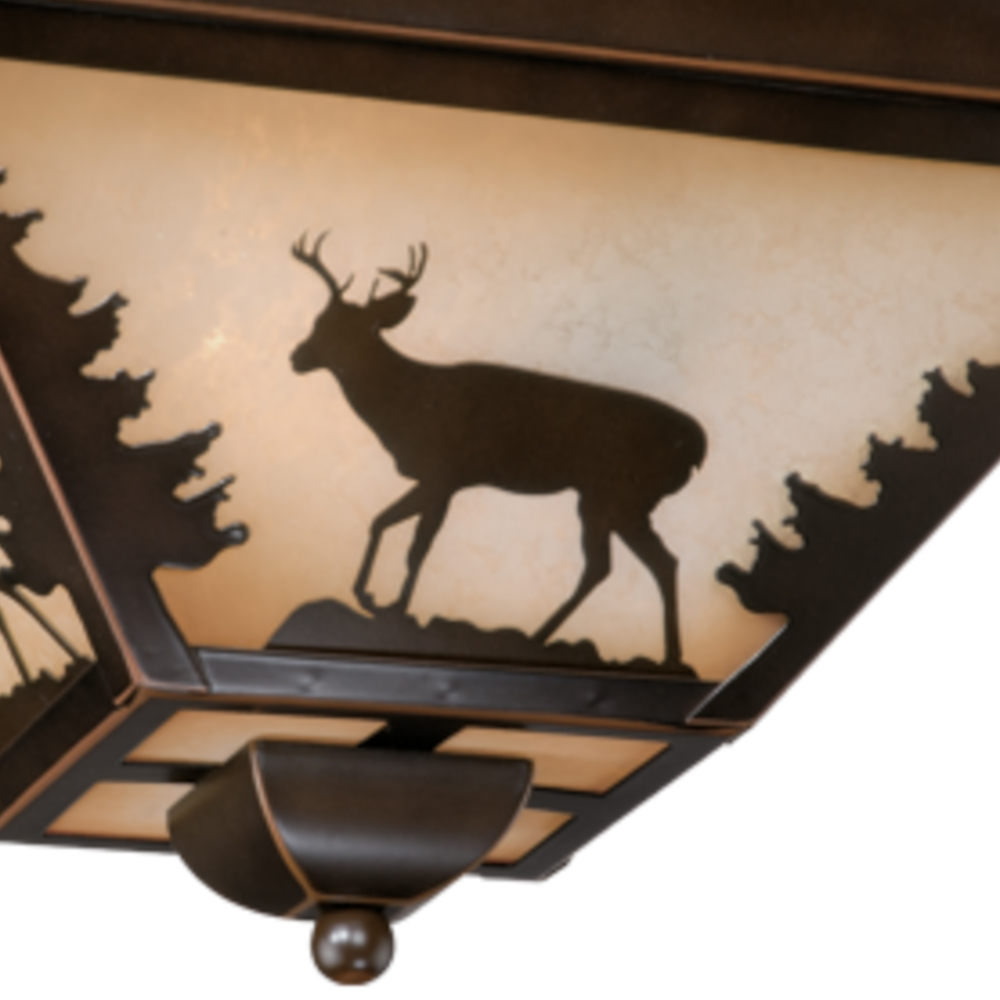 Evoking the spirit of the wilderness, this rustic themed light is clad in a burnished bronze finish and features silhouetted deer imagery atop glowing white tiffany style glass. The classic form of this lamp makes it a great choice for a vacation lodge, cabin or a suburban home - it will complement a variety of home styles: anywhere you want to bring an element of nature. Medium screw base lamping provides maximum light output, and flexibility in bulb choice.