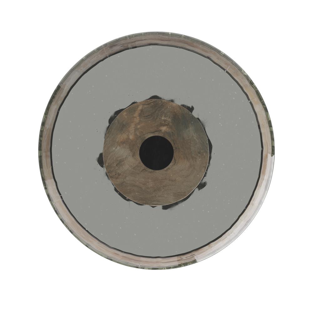 This sleight-of-hand material mix draws the best from the industrial and natural worlds. Buckley's solid column of mango wood in a washed tobacco finish is topped with smoke cast glass for interest and finished with a blackened iron base. Its bullnose profile is adorned with a blackened iron screw at the top for easy lifting and moving. Wood and glass will vary.