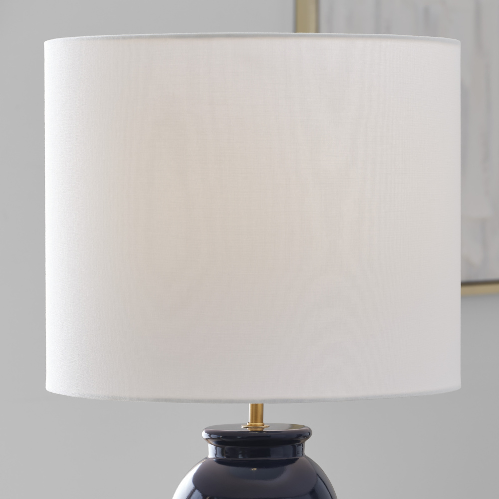 Features a symmetrical body highlighted by a white fabric linen shade
