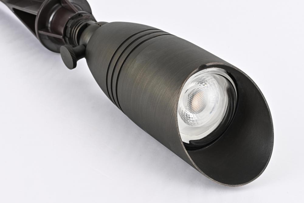 Illuminate your outdoor space with our premium 12-volt cast brass spotlights, designed to bring both durability and elegance to your landscape. Featuring a sleek dark bronze finish, these spotlights seamlessly complement any setting while delivering focused, powerful illumination through a convex glass lens that magnifies the light. Equipped with an MR16 halogen base (compatible with up to 35-watt bulbs) and a sturdy 8-inch plastic mounting stake, installation is quick and secure. with 3 feet of electric wire included, you have the flexibility to perfectly position your lighting for maximum effect. Elevate your outdoor aesthetics with these reliable, high-performance spotlights that are built to withstand the elements and shine brightly for years to come.