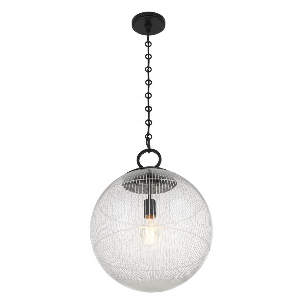 The Savoy House Cabot 1-light pendant takes the beauty of pendant lights to a whole new level with its orb of segmented glass. This orb has an intriguing slim cage-like pattern etched into it, creating a huge dose of texture and style whether the light is on or off. Circular hardware detailing echoes the shape of the glass and wears a Matte Black finish beautifully. Cabot is 19.25" in height and 16" in width. Uses one standard size bulb of up to 60 watts. Bulb not included. Comes with 120" of chain.