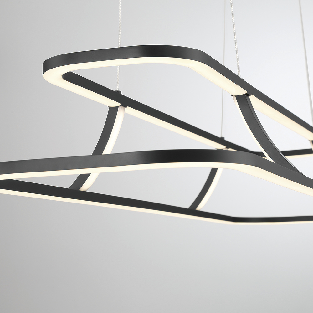 The Cadoux collection features a continuous run of integrated LED lights. This simple framework accentuates its soft curves while amplifying its contemporary form. Offered in two finishes, satin gold and matte black, this clean design is suitable for multiple settings